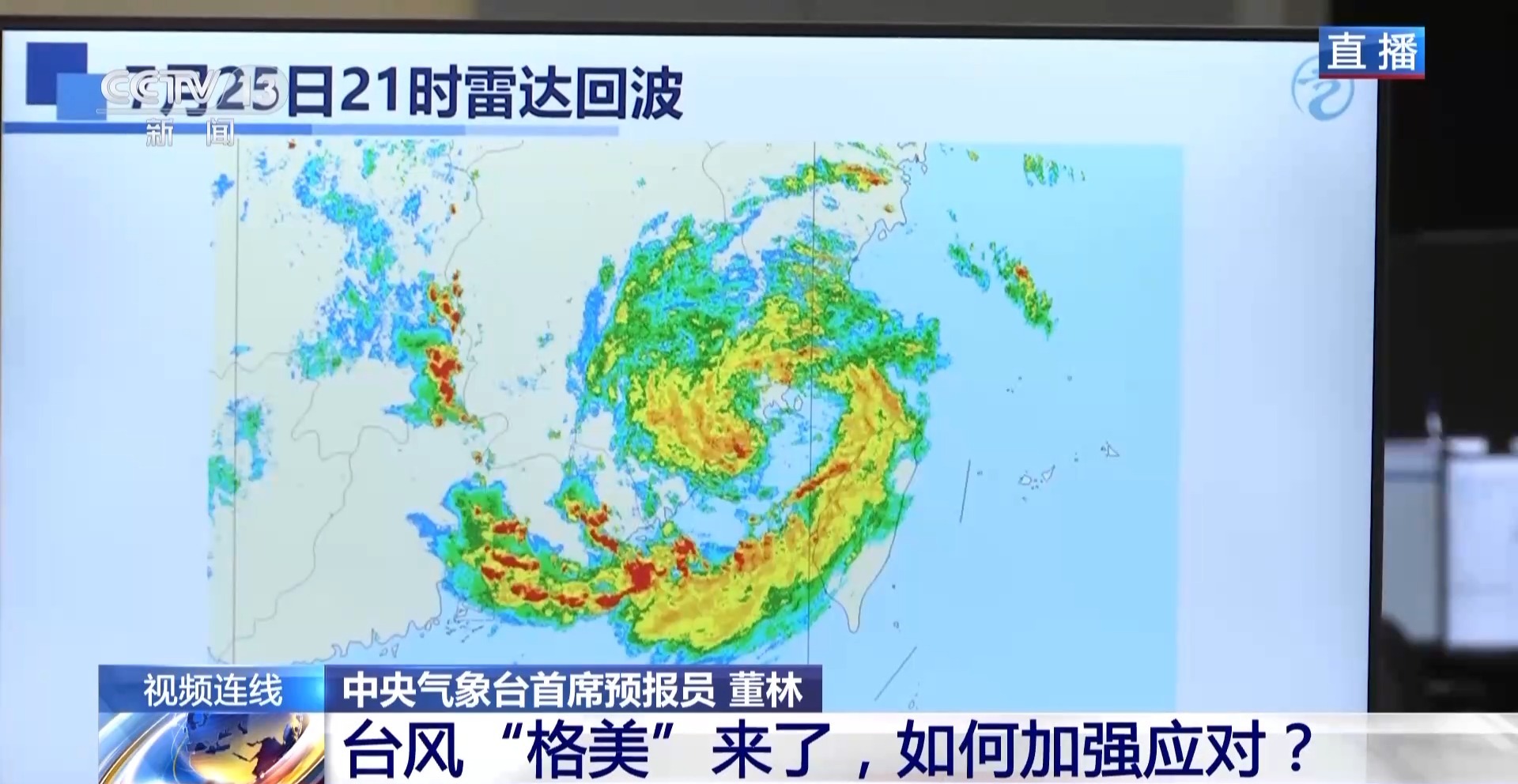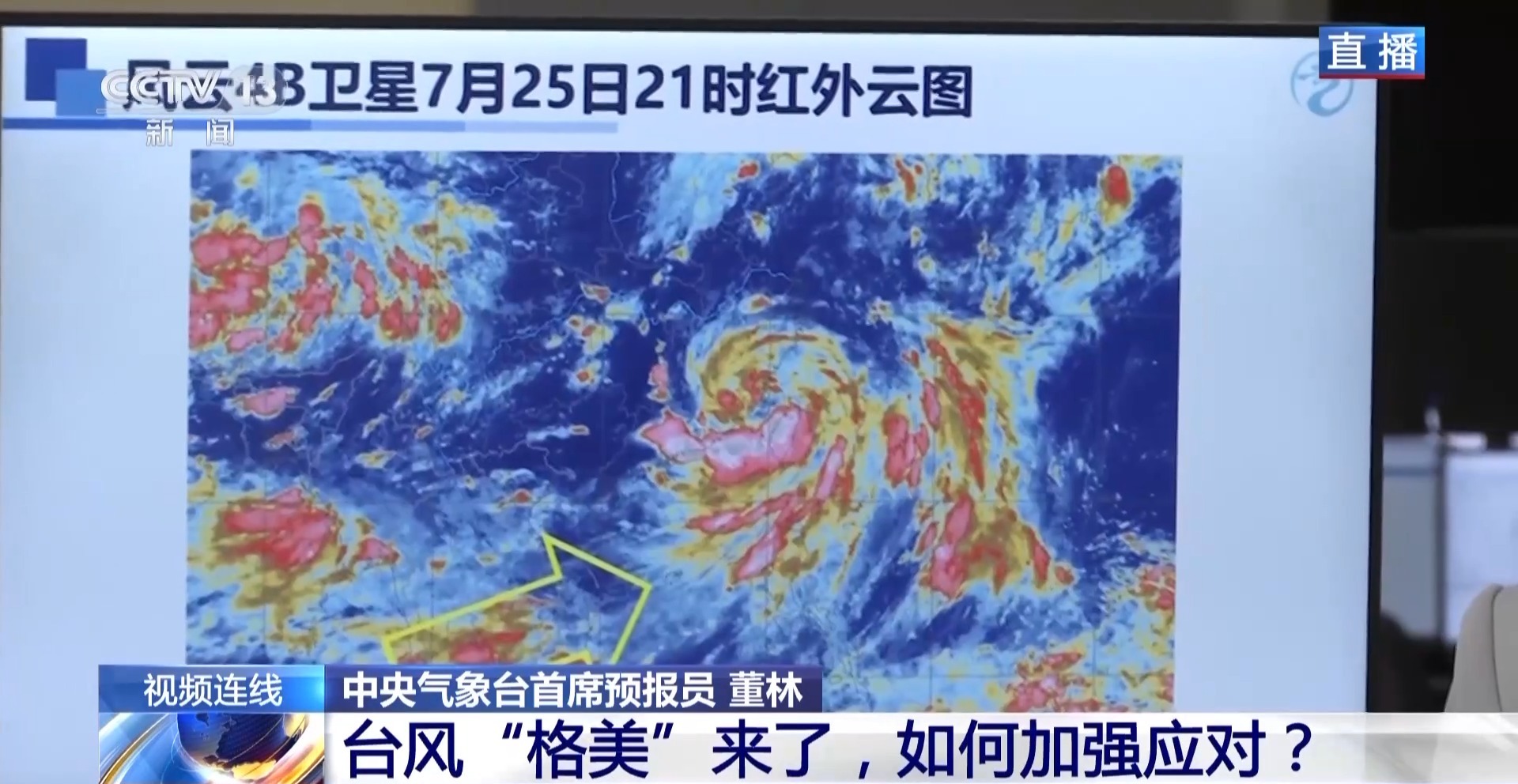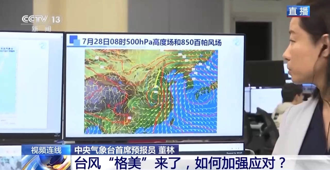 中央气象台首席预报员 董林:7月25日19时50分前后,台风“格美”在福建省莆田的秀屿区沿海登陆,登陆的时候是台风级,是比较强的一个级别。