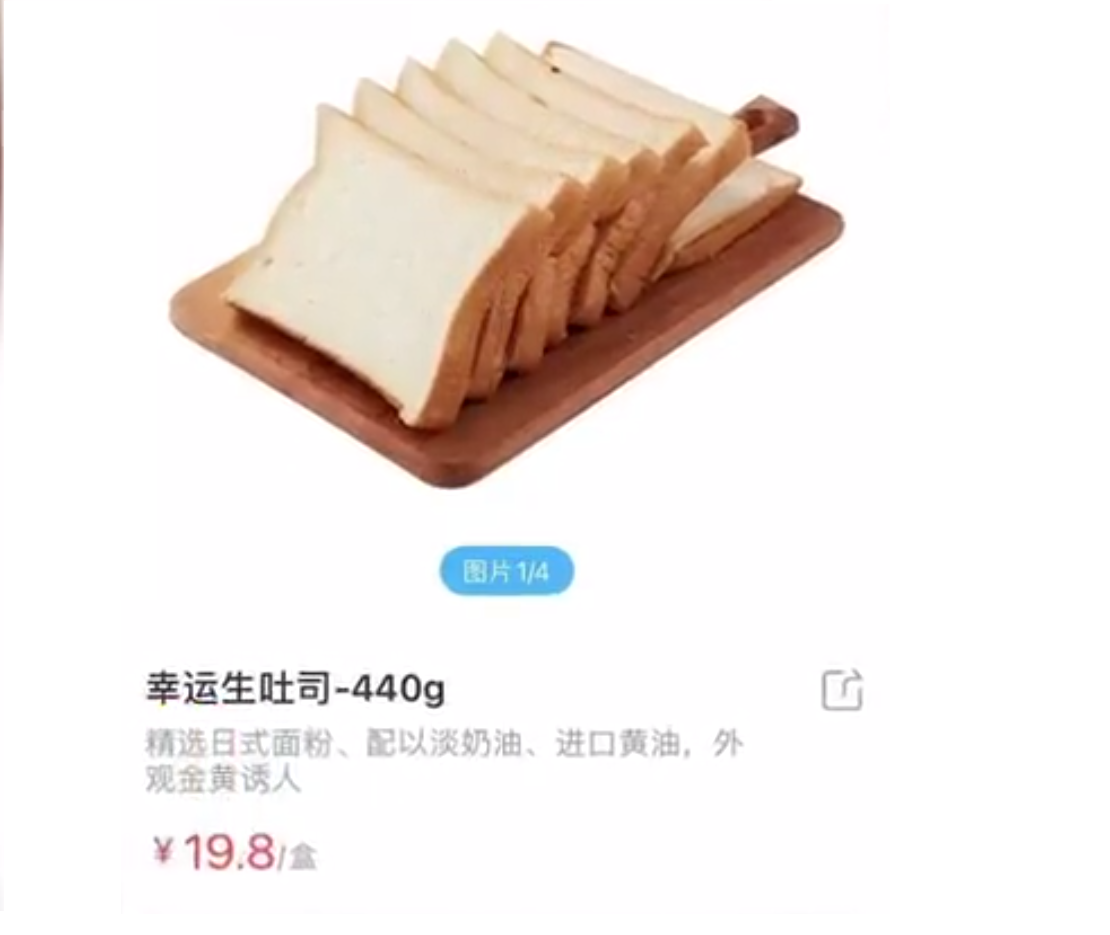 4月6日,消费者严女士通过盒马App从盒马鲜生上海丁香国际店购买了一款“幸运生吐司”产品。