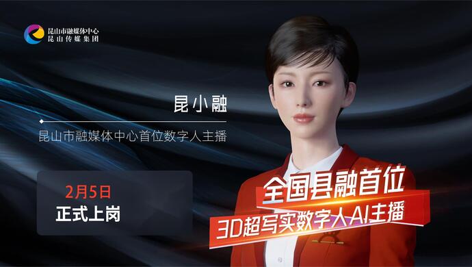 2月5日,立足“元宇宙”新赛道,主动顺应融媒改革创新趋势,昆山市融媒体中心推出全国首个县级融媒体3D超写实AI数字人主播,让新闻突破次元壁、真正“活起来”。